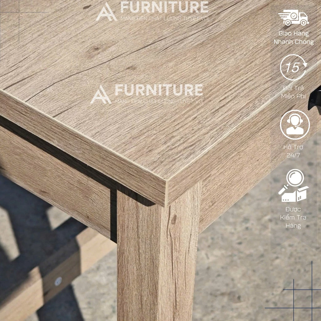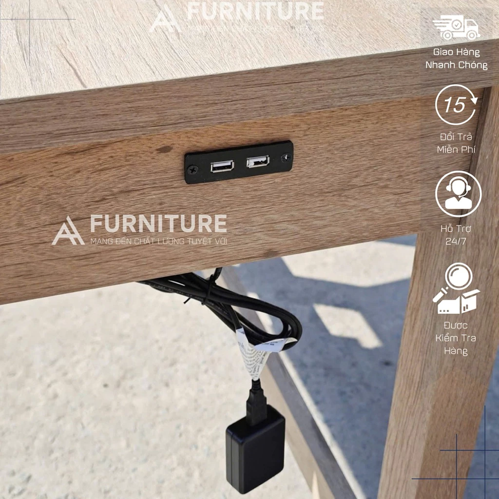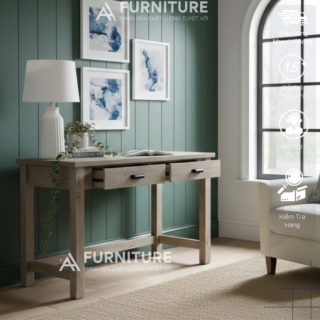 Chiếc bàn này không chỉ là nơi làm việc lý tưởng mà còn là điểm nhấn thẩm mỹ cho bất kỳ căn phòng nào, từ văn phòng tại nhà đến không gian làm việc chung. Ngăn kéo tiện lợi giúp bạn sắp xếp tài liệu, văn phòng phẩm gọn gàng, giữ cho mặt bàn luôn thông thoáng.