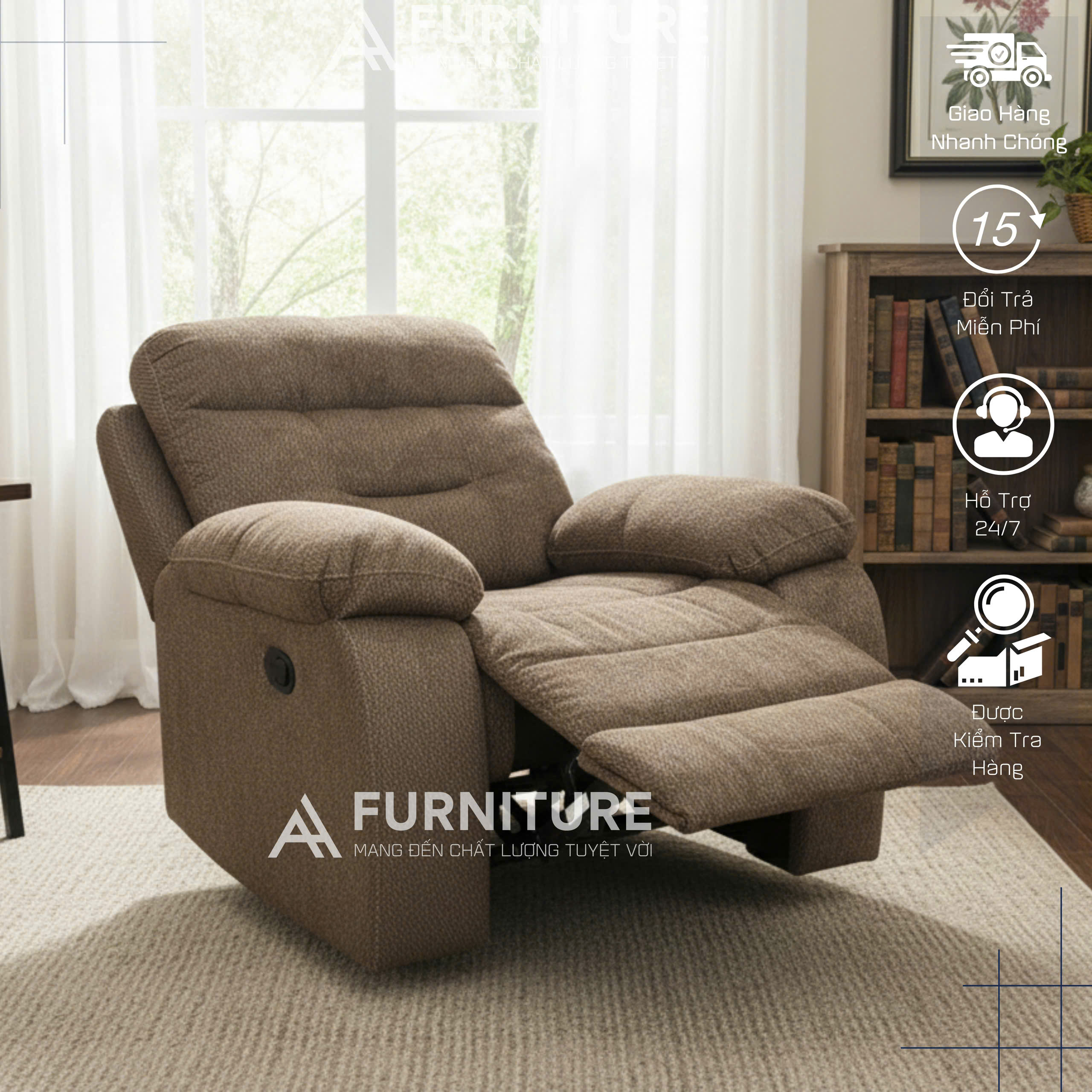 Ghế Sofa Chỉnh Cơ Có Chức Năng Ngả Cao Cấp Chất Vải Nỉ Bố | SOFA ĐƠN RB | Nội Thất Anh Hoàng