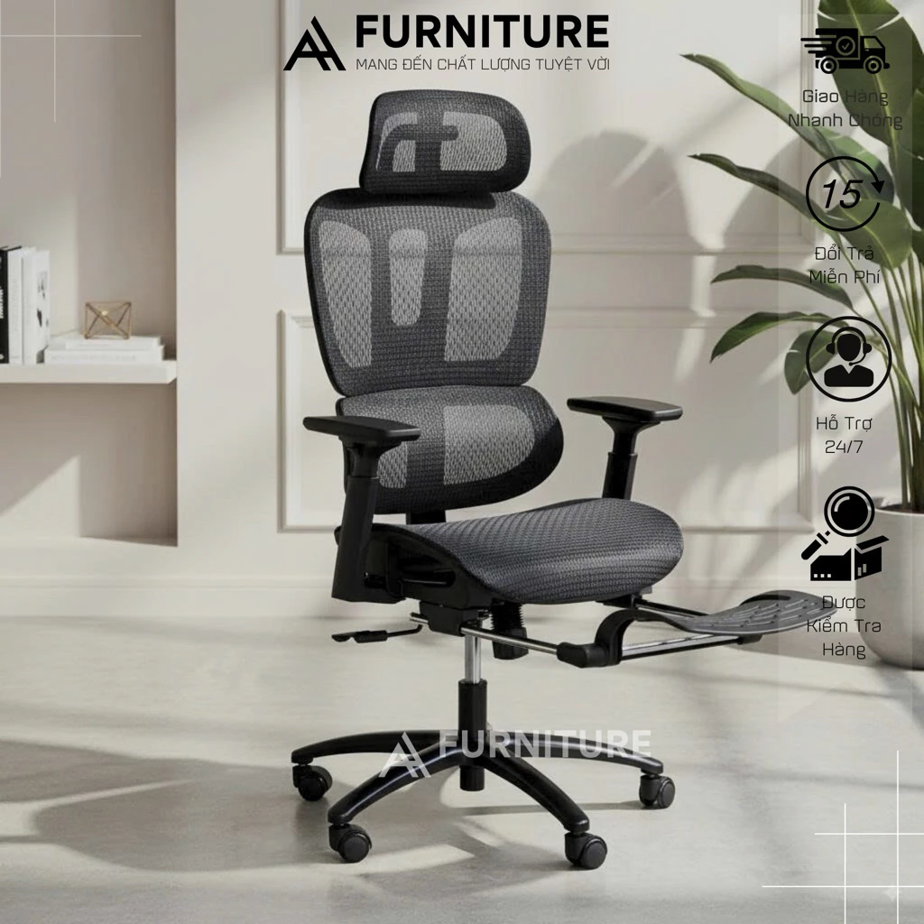 🔹 Ghế Xoay Công Thái Học AH02 – Ghế Văn Phòng Cao Cấp Ngả Lưng, Gác Chân, Tựa Đầu Thư Giãn | Nội Thất Anh Hoàng