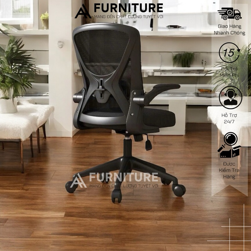 Ghế Xoay Làm Việc Văn Phòng Lưng Lưới Xoay Tròn 360 Độ Cao Cấp, Tay Ghế Tùy Chỉnh | 698 | Nội Thất Anh Hoàng