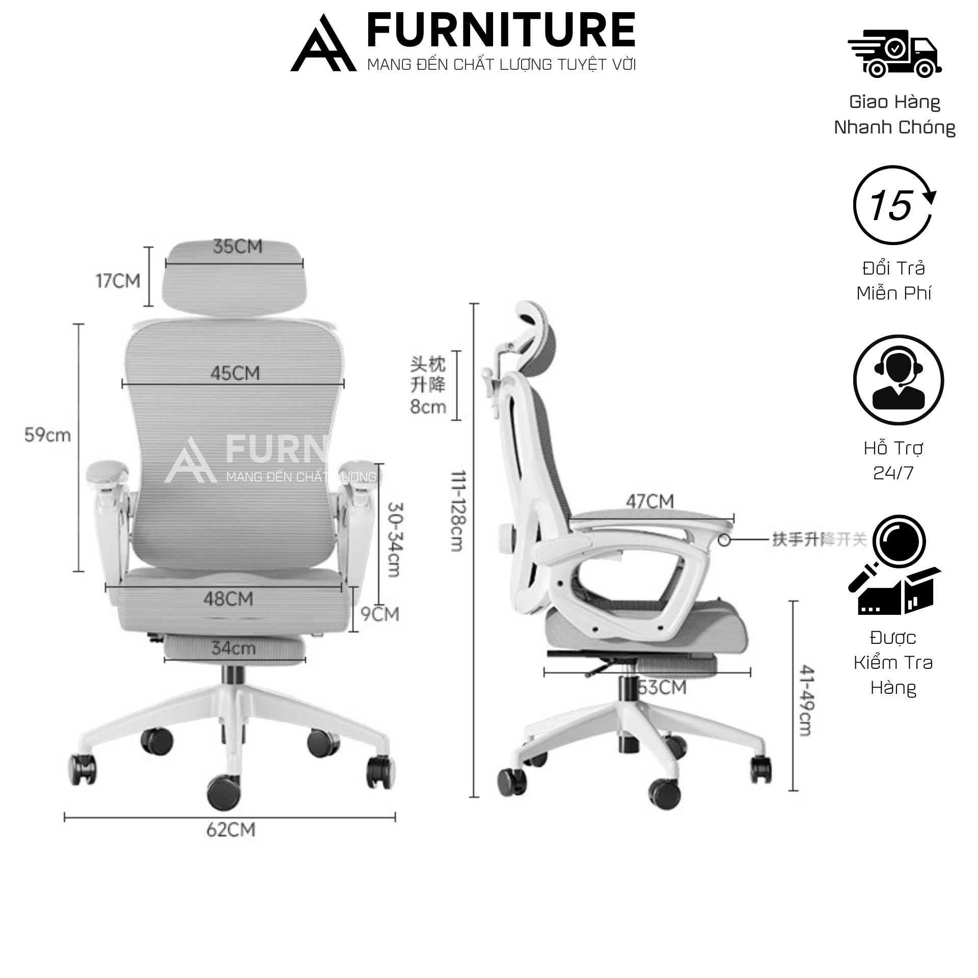 Ghế Xoay Văn Phòng Công Thái Học AH09 – Ngả Lưng, Gác Chân, Tựa Đầu Êm Ái | Nội Thất Anh Hoàng