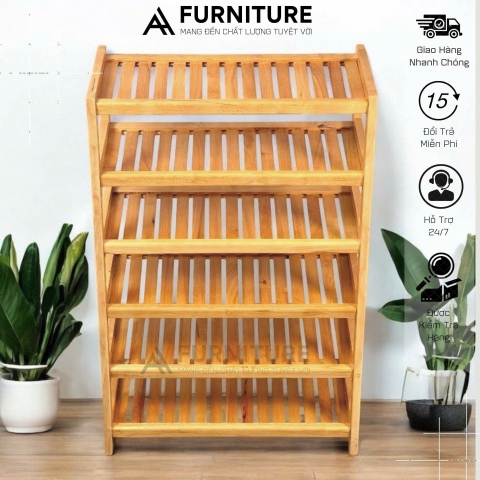 Kệ Để Giày Dép 6 Tầng Gỗ Cao Su 64cm – Thiết Kế Nghiêng Thoáng Khí, Chịu Nước Để Được Nhiều Đồ Dễ Tháo Lắp | Nội Thất Anh Hoàng THÔNG TIN BÁN HÀNG